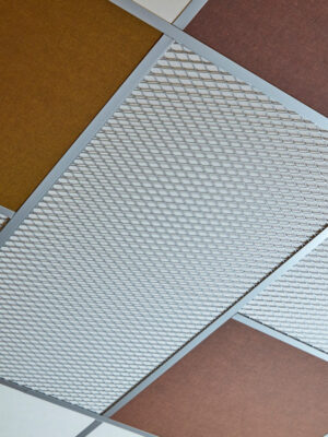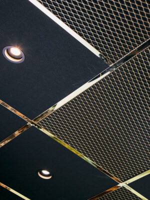 IN THE GRID ist ein dekoratives Maschengitter in Silber oder Messing, das direkt im abgehängten Deckenraster montiert wird und dem Raum eine luxuriöse Note verleiht. Es ist in zwei Größen erhältlich und kann mit einer bzw. zwei Deckenplatten kombiniert werden. Zur Anpassung an die übrige Raumgestaltung können alle unsere EcoSUND TILES mit IN THE GRID verwendet werden: TILES mit Nova, Hush oder EcoSUND in Weiß, Schwarz oder Grau, oder in der RAW-Edition.