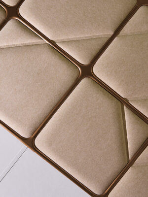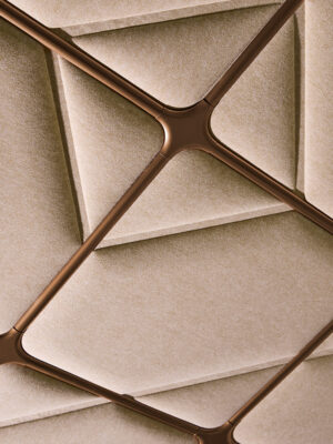 Tiles Axis verbindet weiche Formen mit klaren, geradlinigen Mustern und verleiht der Decke einen lebendigen Charakter. Ersetzen Sie einzelne Platten, um spannende Akzente zu setzen, oder gestalten Sie die gesamte Deckenfläche für eine starke Designidentität. Wählen Sie zwischen ein oder zwei Linien, die die Platte durchziehen – und kombinieren Sie sie anschließend mit dem HUSH-Textil Ihrer Wahl für eine persönliche Note.
