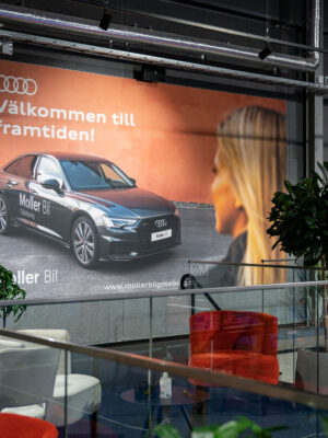 PRINT BIG wird in jedem Format Ihrer Wahl in Größen bis zu 3×50 Metern ohne Naht hergestellt. Alle Absorber sind 40 mm dick und sorgen für eine gute Schallabsorption. Das schallabsorbierende Material von PRINT BIG besteht aus EcoSUND. Ein Vorteil für die Kunden ist, dass der gewählte Druck auf dem PRINT BIG geändert werden kann. In diesen Fällen ist nur ein neuer Druck erforderlich – der Aluminiumrahmen und die EcoSUNDSchallabsorber bleiben an ihrem Platz. Für größere Größen nehmen Sie bitte Kontakt mit uns auf.