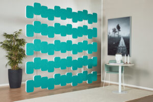 PENDULA PIXEL ist ein effizienter Schallabsorber aus Ecosund®, hergestellt aus recyceltem PET. Der Absorber wird häufig verwendet, um Räume im Raum zu schaffen oder als Baffeln an der Decke, um die Schallausbreitung zu verhindern. Der vertikale Absorber PENDULA wird einzeln montiert und beeinträchtigt vorhandene Installationen wie Belüftung und Beleuchtung nicht, was ihn noch kostengünstiger macht, da Handwerker bereits installierte Produkte nicht versetzen müssen. Aufhängung ist separat erhältlich. Entworfen von o4i Design Studio.