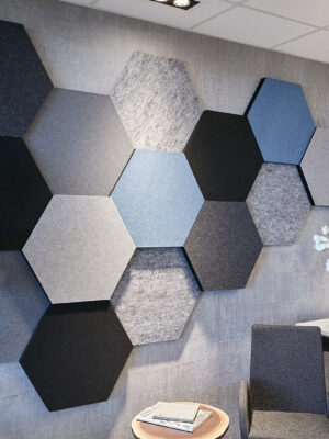 HONEY ist ein verspieltes, modulares Wandpaneel, das sich zu verschiedenen Mustern in verschiedenen Farben, mit oder ohne Textilien zusammenstellen lässt. HONEY ist ein verspielter, modularer Wandabsorber mit Paneelen, die sich zu verschiedenen Mustern in verschiedenen Farben, mit oder ohne Textilien zusammenstellen lassen. HONEY hat dank der unterschiedlichen Dicken der Absorber ein dreidimensionales Erscheinungsbild. HONEY ist ein effektiver Schallabsorber aus EcoSUND, das aus recyceltem PET besteht.