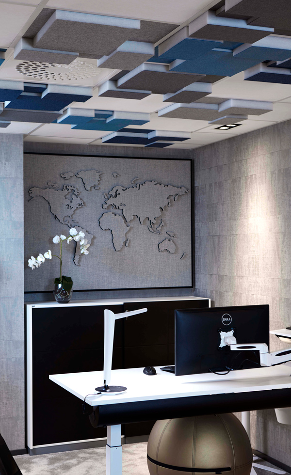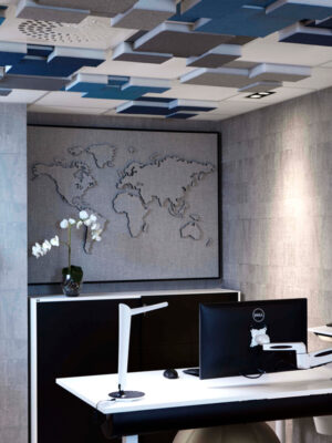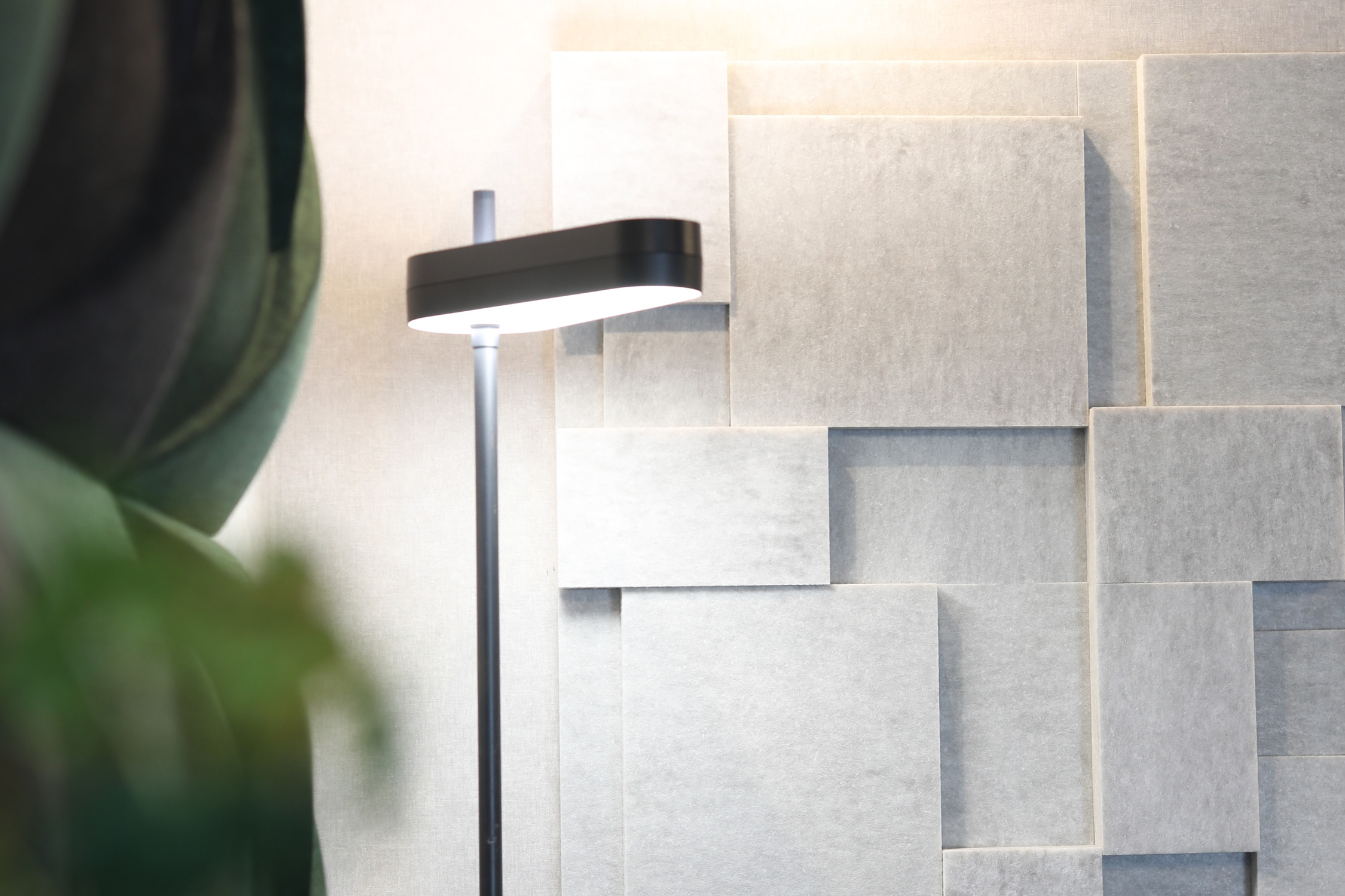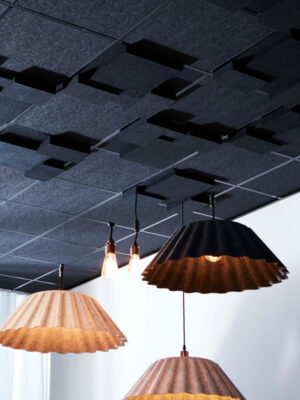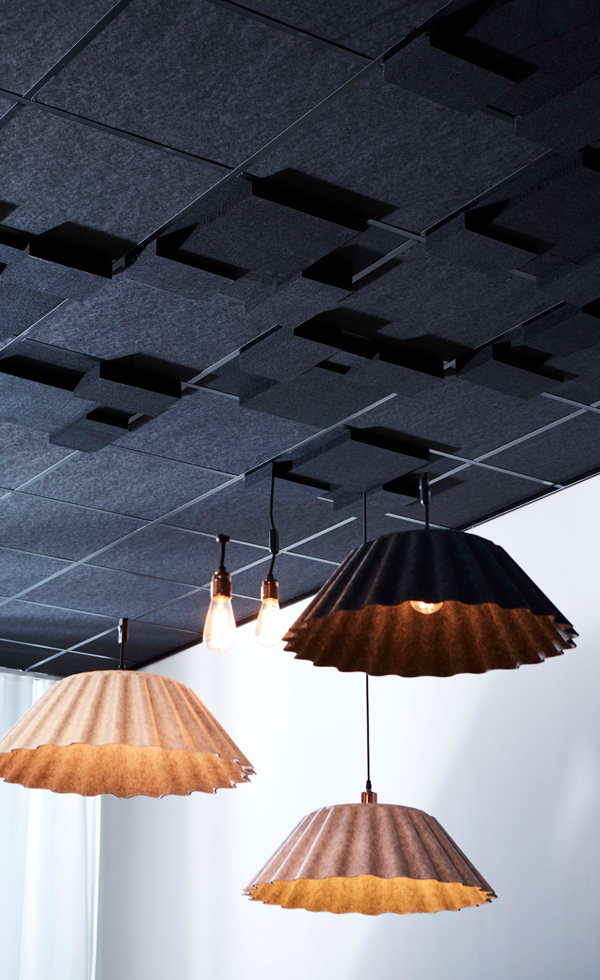 NIVÅ verbessert die Akustik und ist durch sein Design ein Blickfang in jedem Raum. Die Paneele können variiert werden, um verschiedene Muster in verschiedenen Farben, mit oder ohne Textil zu bilden. NIVÅ ist ein einzigartiger dreidimensionaler, modularer Schallabsorber, der sowohl an der Decke als auch an der Wand montiert werden kann. Da der Absorber in 360° montiert werden kann, haben Sie vielfältige Möglichkeiten, Ihr eigenes Design zu erschaffen. NIVÅ ist ein effizienter Schallabsorber, der mit EcoSUND hergestellt wird, das aus recyceltem PET besteht.