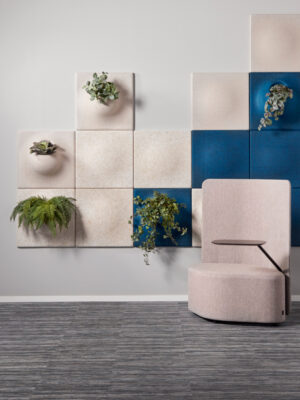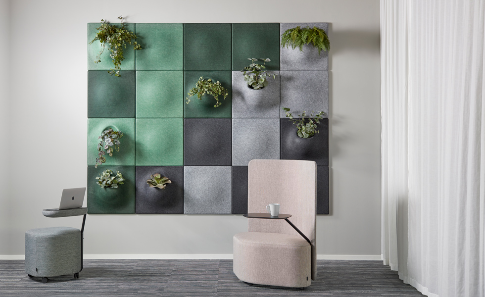 Schaffen Sie ein einzigartiges und lebendiges Büro mit PlantPanel. Ein geformtes Paneel, das mit künstlichen Pflanzen gefüllt werden kann, um den Raum dynamisch zu gestalten. Außerdem bieten wir PlainPanel an, das geformte Paneel mit einem einfachen Design, das Leben in den Raum bringt.