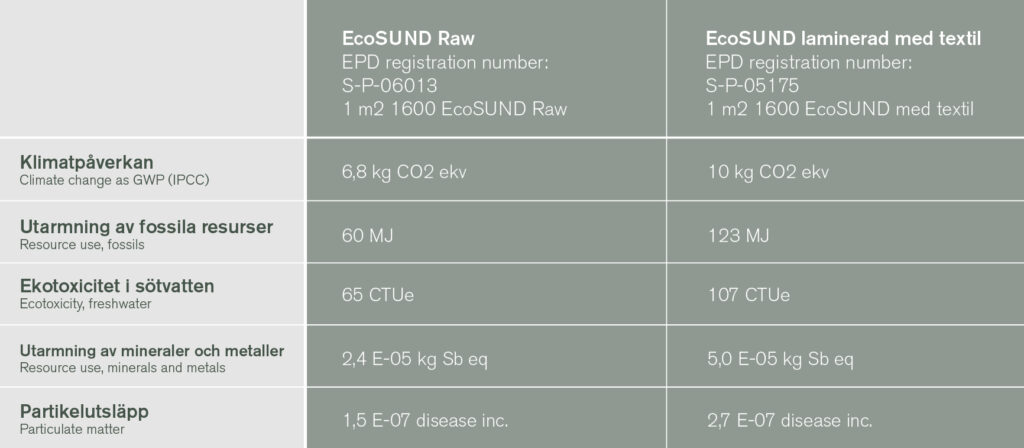 Vi har räknat på vår miljöpåverkan från EcoSUND® och EcoSUND® RAW.