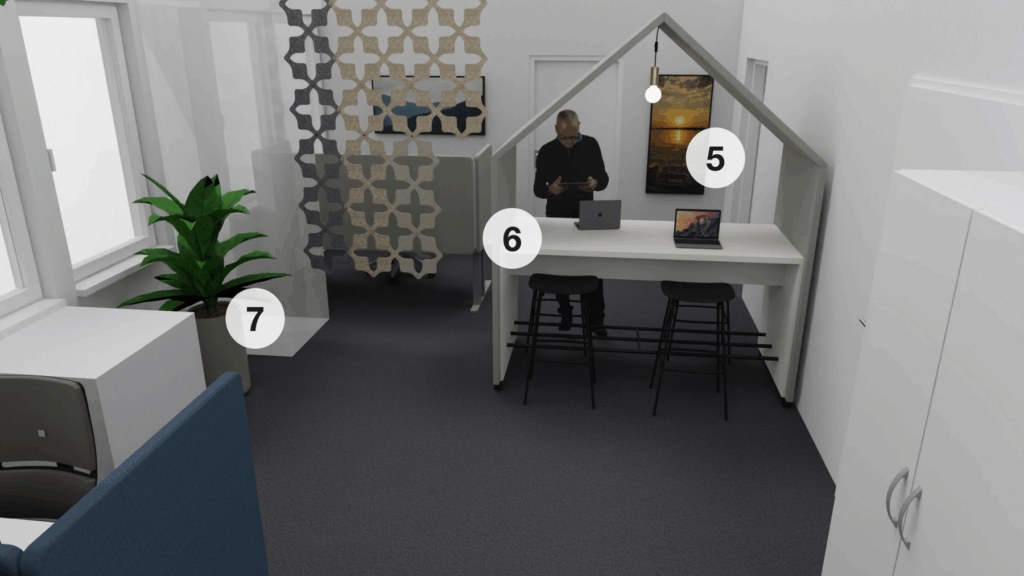 För större ytor kan ett rum-i-rummet koncept adderas. Perfekt för kortare lunchmöten.