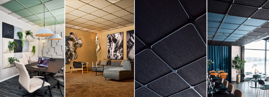 Absorbenter, i kärnmaterialet EcoSUND, är kärnan i Akustikmiljös verksamhet. Produkter med ett tydligt syfte att skapa trivsamma lokaler med god akustik, i kreativa former och färger, kanske med printmotiv på. Nu lanseras en produkt med mer fokus på estetik än kanske just akustik. Tillsammans med formgivarna Jon Lindström och Henrik Kjellberg på o4i designstudio har Akustikmiljö utvecklat produkten Addon Celing. Ett nytt unikt profilsystem som klär bärverkssystem T-24. Systemet, som består av profilskenor och rosetter, skapar karaktär till ett rum, ger ett spännande intryck som flörtar med både traditionell såväl som modern arkitektur.
