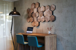 HONEY PRINT MINI är likt sin storebror HONEY PRINT en lekfull och modulär väggabsorbent med paneler som kan varieras för att bilda unika mönster i olika färger, med eller utan textil. Har ett 3-dimensionellt uttryck tack vare absorbenternas olika tjocklekar. Kan användas tillsammans med HONEY PRINT eller helt för sig självt. HONEY PRINT MINI är en effektiv ljudabsorbent tillverkad av Ecosund® som består av återvunnen PET.