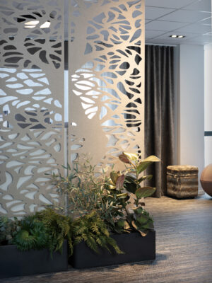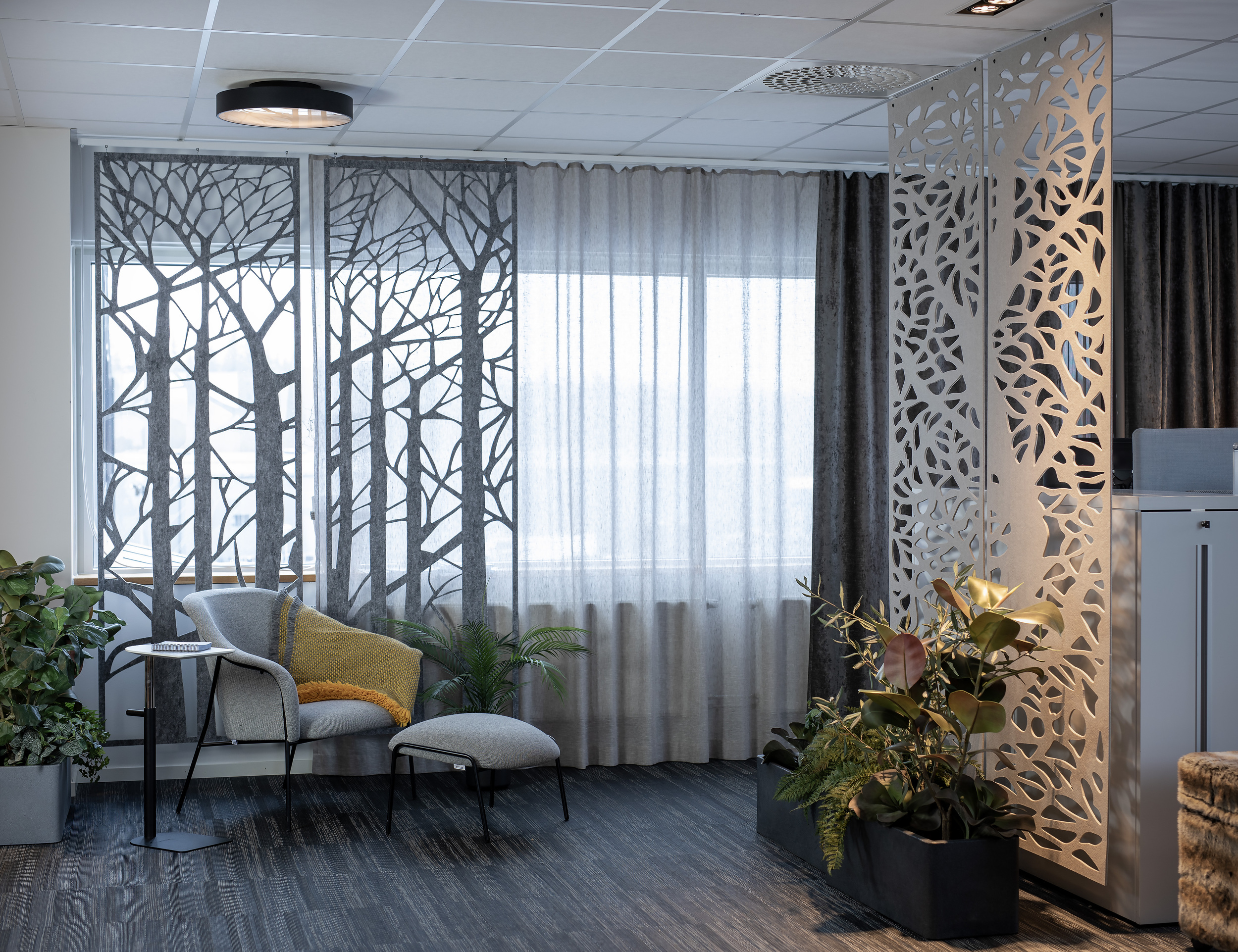Divido är en flexibel och dekorativ rumsavdelare som både förbättrar akustiken och delar av öppna ytor. Tillverkad i formpressad filt och bestående av två paneler som tillsammans skapar ett grafiskt och livfullt mönster. Välj mellan fem olika utföranden: Leaves, Bubbles, Birch, Circles och Tree.