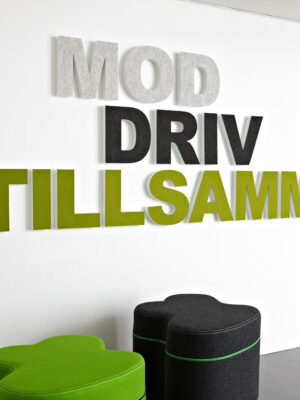 3D är en formskuren ljudabsorbent där du kan skapa ett unikt uttryck med egen logotyp eller annan fri form. Välkomna besökare med en ljudabsorberande logotyp i receptionen eller häng din form fritt som en mobil. 3D lämpar sig väl för ljussättning och är en effektiv ljudabsorbenter tillverkade av EcoSUND som består av återvunnen PET.