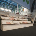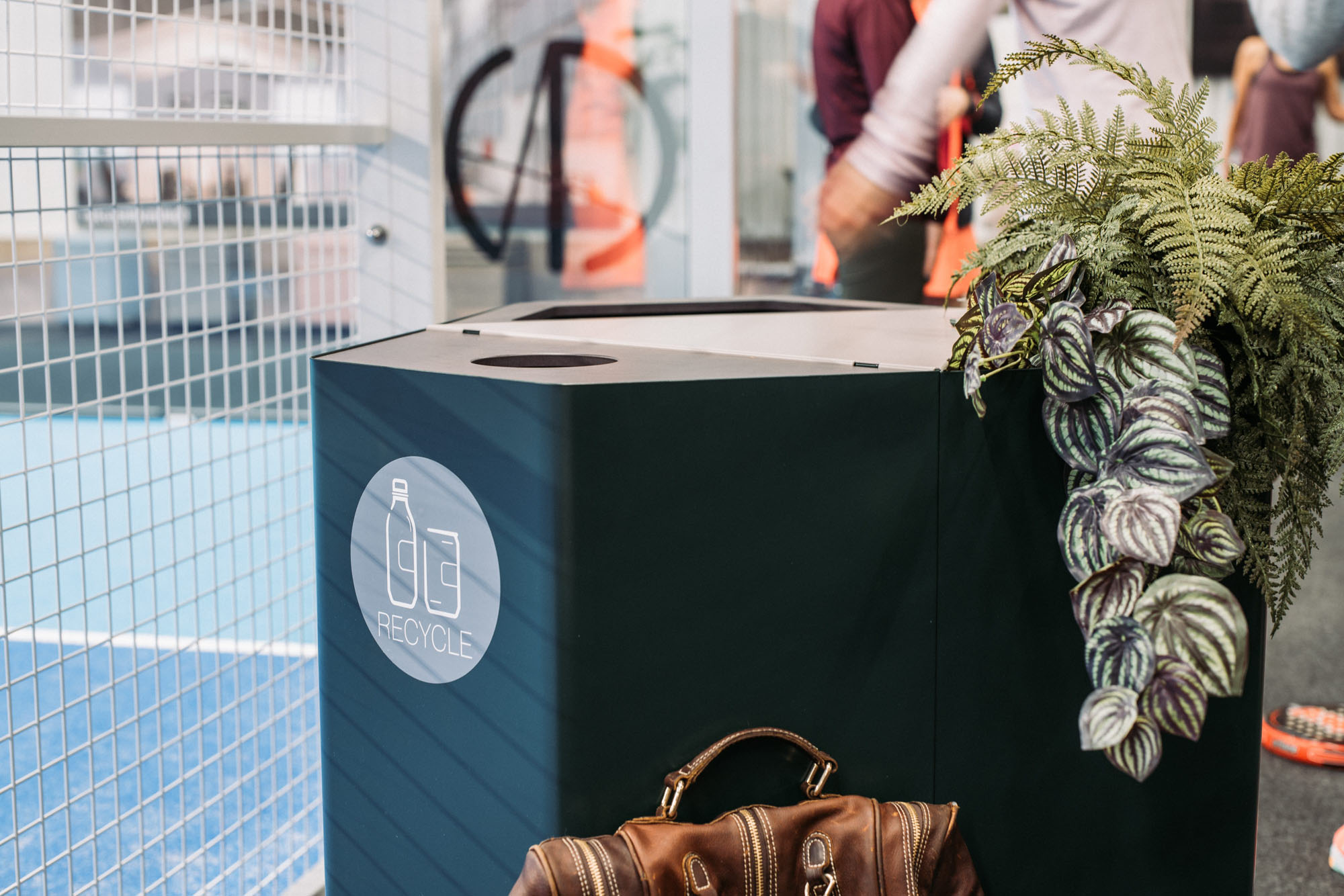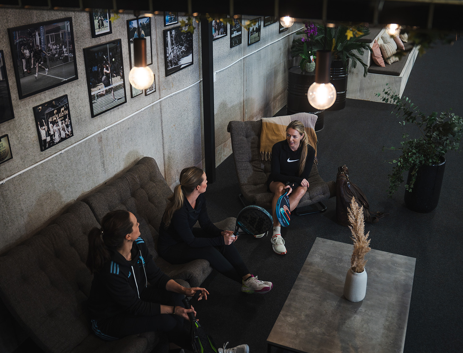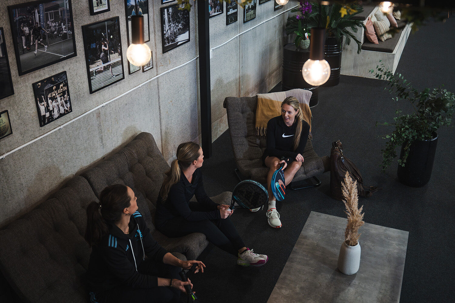 Satsningen har inte stannat vid själva spelplanerna. Även flera av biytorna har fått nytt liv, bland annat området runt centercourten i padelhallen. Här har man skapat en trivsam miljö med sittmöbler, puffar och växter – samtliga produkter är 100 procent återbrukade och bidrar till både komfort och hållbarhet.