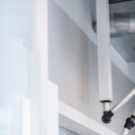 Ljudabsorbenter från Akustikmiljö pryder även tak och väggar i centrats alla laboratorier, samt är integrerade i väggarna vid ljusgårdarna omkring trappor och andra öppna ytor. Men här har ljudabsorbenterna i stället en ljusgrå textilbeklädnad som blir en naturlig och harmonisk del av LIFE Campus avskalade nordiska design.