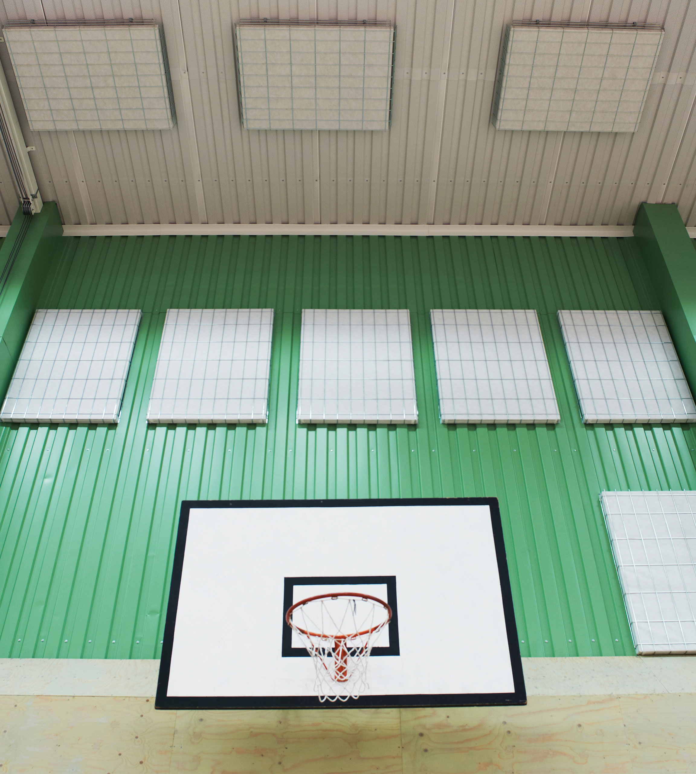 STARK verbessert die Akustik und hat ein robustes Drahtgeflecht zum Schutz des Absorbers. STARK wird vor allem in Sportzentren und in Räumen mit niedrigen Decken verwendet, die einem Risiko für Beschädigungen ausgesetzt sind. Kernmaterial EcoSUND Wählen Sie die Farbe des Kernmaterials, das in der RAW-Edition vollständig sichtbar ist. Vorstellung STARK ist für anspruchsvolle und laute Umgebungen wie Sporthallen konzipiert, in denen Balltreffer die Schallabsorber sonst beschädigen würden. Das robuste Drahtgitter hält den Absorber sicher an seinem Platz. STARK ist ein effektiver Schallabsorber, der mit EcoSUND hergestellt wird, das aus recyceltem PET besteht.